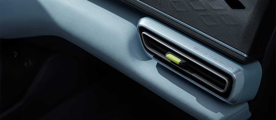 Ventilasi AC BYD Atto 1 hadir dengan gaya cyberpunk yang bold, memadukan garis tegas dan aksen warna modern yang mencolok. Sentuhan futuristik ini membuat kabin terasa lebih hidup dan dinamis, sekaligus memperkuat karakter inovatif dan berjiwa muda.